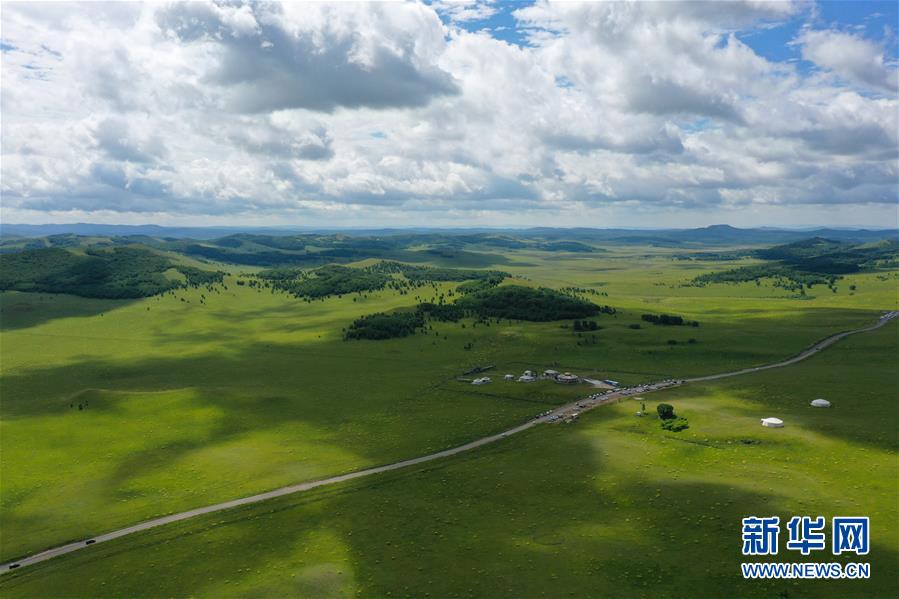 这是8月13日拍摄的克什克腾旗乌兰布统景区风景(无人机照片)。 克什克腾旗位于内蒙古自治区赤峰市西北部,境内的湖泊、河流、草原、森林等自然景观,让人们流连忘返。 新华社记者 徐钦 摄