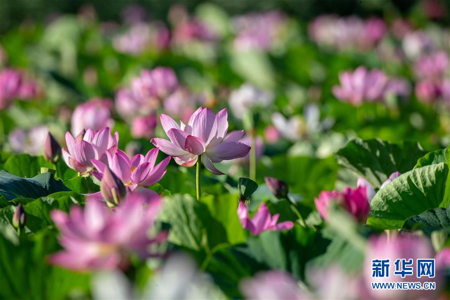 这是在镇赉环城国家湿地公园拍摄的荷花(8月12日摄)。新华社记者 张楠 摄