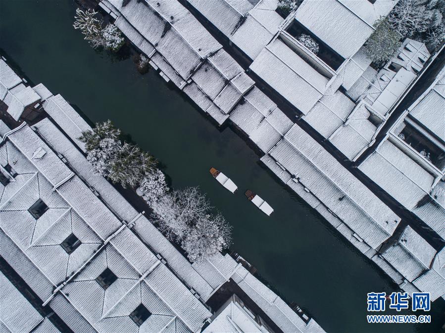 浙江省嘉兴市乌镇雪后景色(2018年12月9日摄,无人机照片)。 新华社记者 徐昱 摄