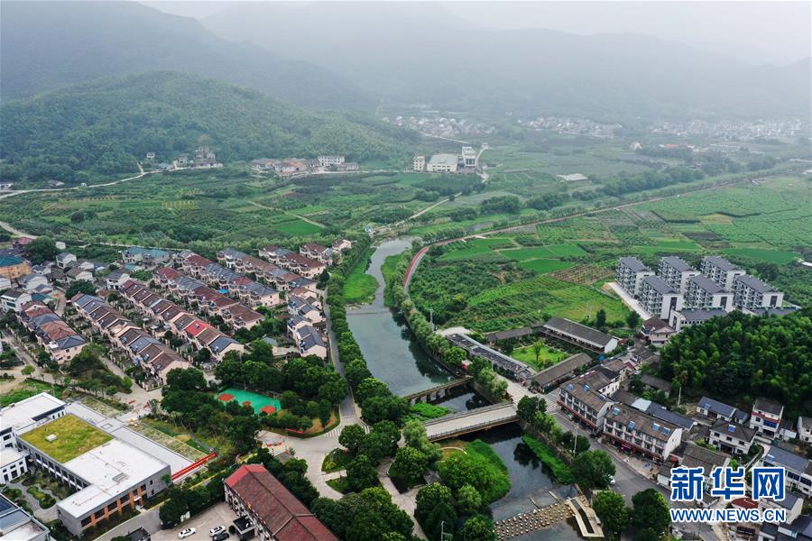 空中俯瞰浙江省桐庐县富春山镇石舍村(2019年5月26日摄,无人机照片)。 新华社记者 黄宗治 摄