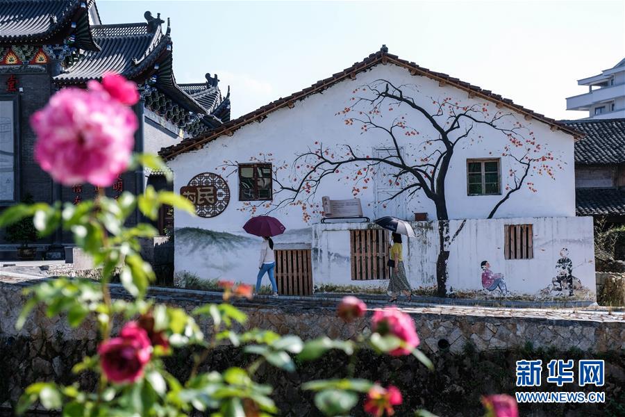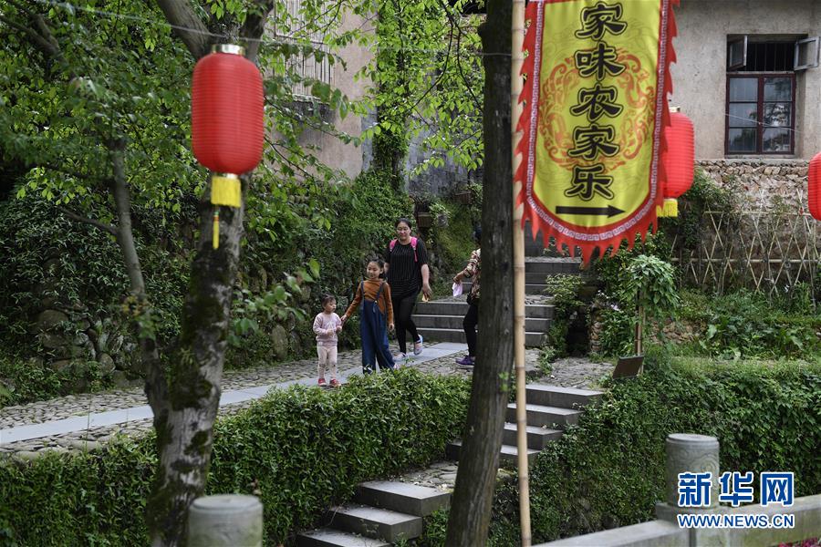 游客在浙江省衢州江山市石门镇清漾村游览(2018年4月20日摄)。 新华社记者 黄宗治 摄
