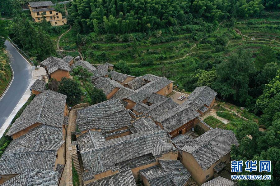 7月18日拍摄的浙江省丽水市松阳县三都乡上田村(无人机照片)。2018年5月,上田村启动半岭民宿综合体项目,修老屋、筑村道、开民宿、建餐厅,深山里的村庄实现华丽转身。 新华社记者 黄宗治 摄