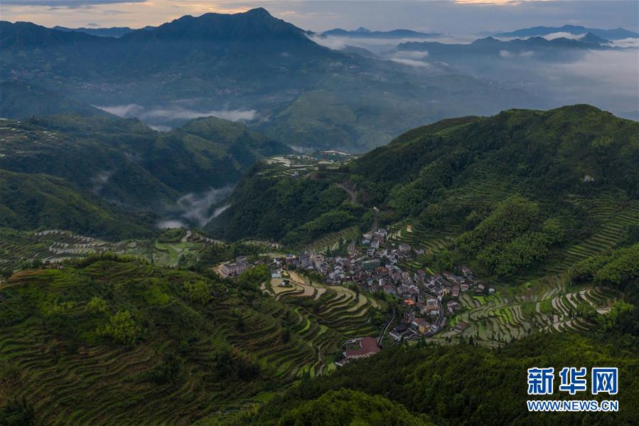 空中俯瞰浙江省青田县小舟山乡(6月11日摄,无人机照片)。 新华社记者 徐昱 摄