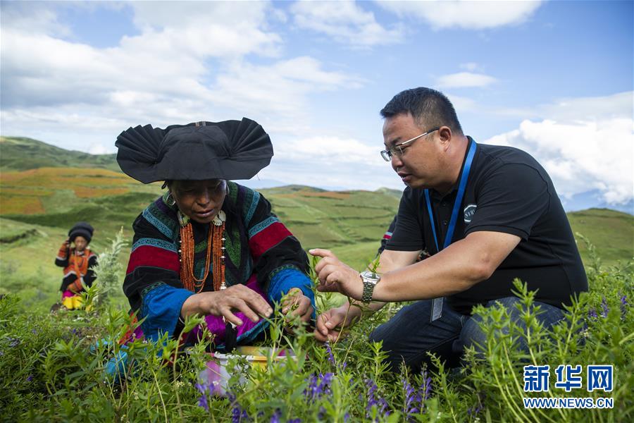 8月14日,在位于四川省凉山彝族自治州昭觉县龙沟乡境内的海拔2850米的波火尔且高山坡地上的黄芩种植基地,西南医科大学副教授夏纪毅(右)为当地彝族群众讲授黄芩种植和采摘技术。 四川省凉山彝族自治州昭觉县龙沟乡位于古里拉达大峡谷中,属半农半牧高寒山区,是昭觉县较为偏远、贫困的几个乡镇之一。西南医科大学副教授夏纪毅是一位黄芩专家,在龙沟乡挂职乡党委脱贫攻坚专职副书记。2018年,他以科研资金为支撑,将自己研究多年的黄芩种在了平均海拔2450米的龙沟乡。试种的黄芩当年实现亩产920斤,亩均收入达到3220元左右,是当地百姓种植土豆亩均收入的2倍、种植荞麦亩均收入的3倍。 在西南医科大学扶贫队伍的帮助下,龙沟乡制定了走科技扶贫撬动产业发展的“黄芩产业脱贫”路子,在四川省科技厅、西南医科大学和凉山州科技局药材种植扶贫项目支持下,2019年,龙沟乡扩大黄芩种植面积达到160亩,并在海拔2850米的波火尔且高山坡地成功种植黄芩。2020年,该乡建成面积达250余亩的高海拔黄芩种植基地。黄芩的种植成功,直接带动龙沟乡100余户近600名贫困人口、辐射带动1000余人增收致富。 为了获得更多的亩均效益,龙沟乡制定了黄芩全株创新开发使用策略,把黄芩深加工、产业链的着力点放在了黄芩茶的研制上。通过与四川蒙顶山资深茶人合作,利用非药用的黄芩嫩芽嫩叶研发出黄芩茶,将其命名为“黄金茶”并组建生产工厂“黄金茶坊”。“黄金茶”的研发成功,使当地种植黄芩的亩均收入提升至5000元左右。2020年,该乡为当地百姓发放红利、管理补助等已达到35万元。小小黄芩,为大凉山深处的贫困群众铺就一条脱贫致富的“黄金路”。 新华社记者 沈伯韩 摄 |