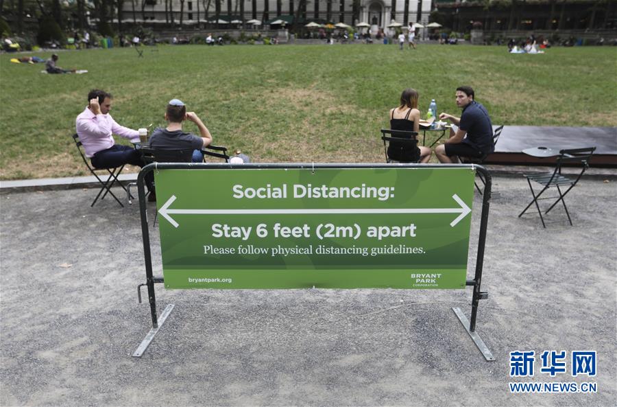 8月31日,人们在美国纽约布莱恩特公园小憩。 新华社记者 王迎 摄