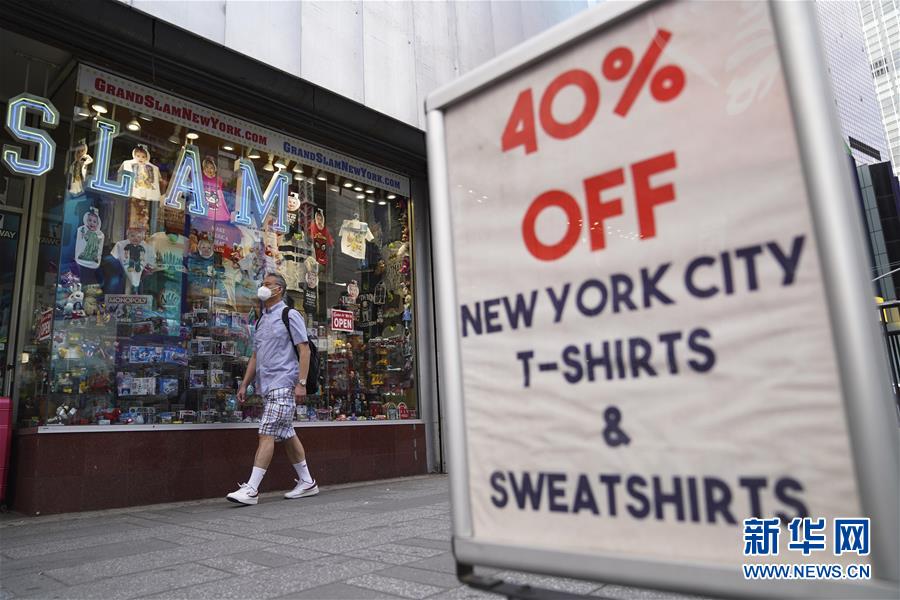 8月31日,在美国纽约时报广场,一名男子从一家纪念品商店外走过。 新华社记者 王迎 摄