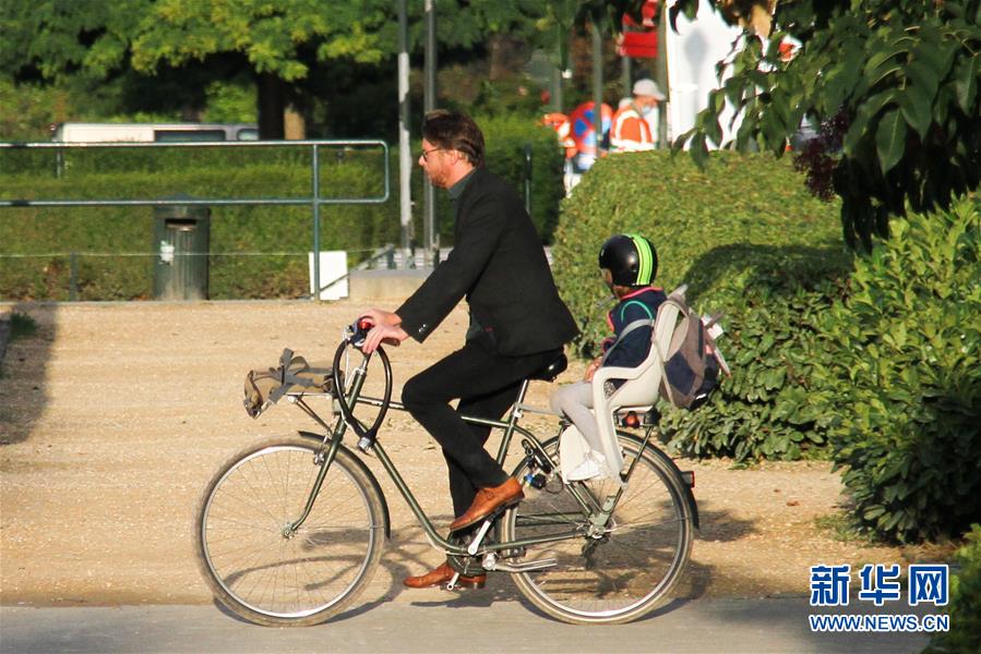 9月1日,在比利时布鲁塞尔,家长送孩子上学。 9月1日起,比利时各级学校陆续开学复课。 新华社记者 郑焕松 摄