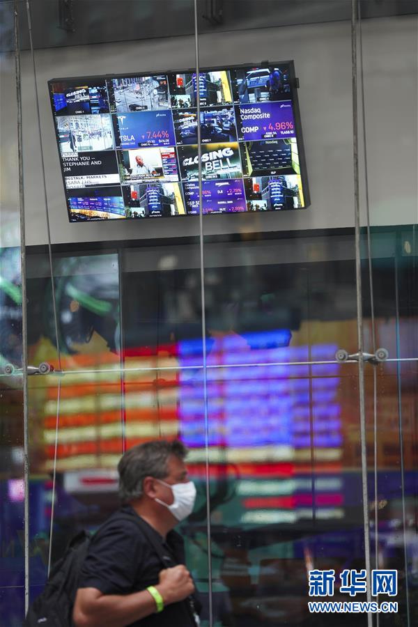 9月3日,一名男子从美国纽约纳斯达克证券交易所的显示屏旁走过。 纽约股市三大股指3日大幅下跌。截至当天收盘,道琼斯工业平均指数下跌807.77点,收于28292.73点,跌幅为2.78%;标准普尔500种股票指数下跌125.78点,收于3455.06点,跌幅为3.51%;纳斯达克综合指数下跌598.34点,收于11458.10点,跌幅为4.96%。 新华社记者 王迎 摄
