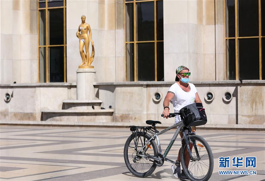9月3日,一名男子戴口罩走过法国巴黎的特罗卡德罗广场。 法国公共卫生部门3日公布的数据显示,法国过去24小时新增新冠确诊病例7157例,累计确诊300181例,累计死亡30706例。 新华社记者 高静 摄