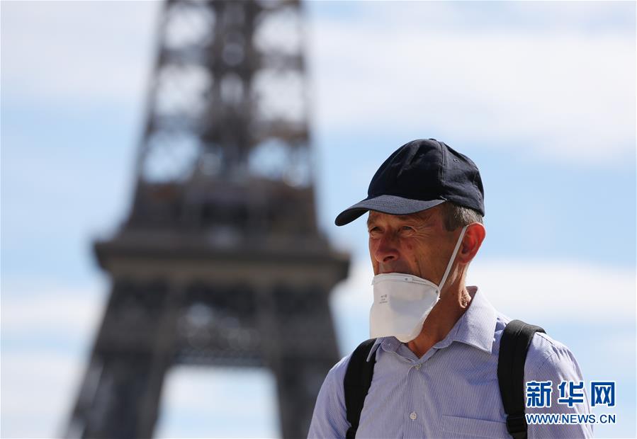 9月3日,一名男子戴口罩走过法国巴黎的特罗卡德罗广场。 法国公共卫生部门3日公布的数据显示,法国过去24小时新增新冠确诊病例7157例,累计确诊300181例,累计死亡30706例。 新华社记者 高静 摄