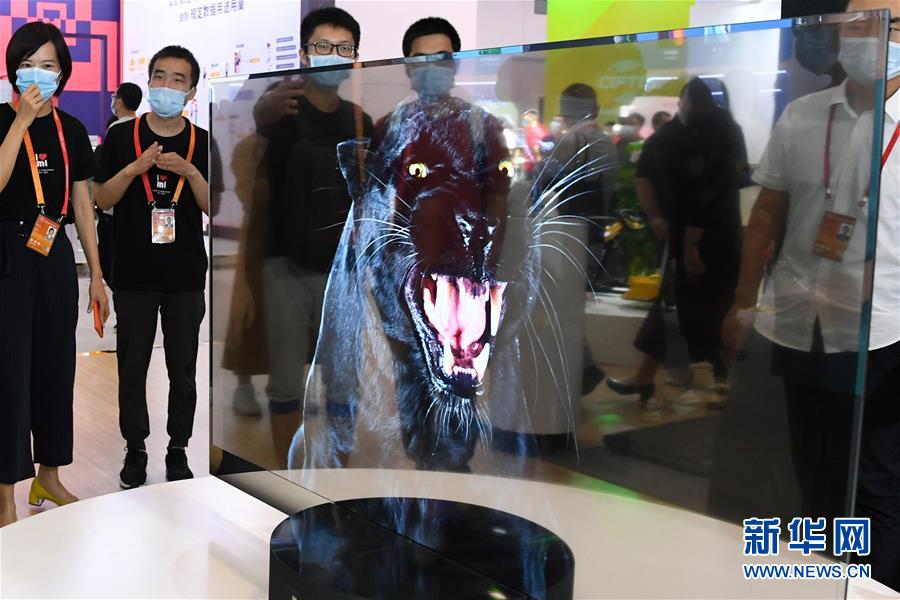 9月6日,观众在服贸会综合展区参观“透明电视”。 新华社记者 任超 摄