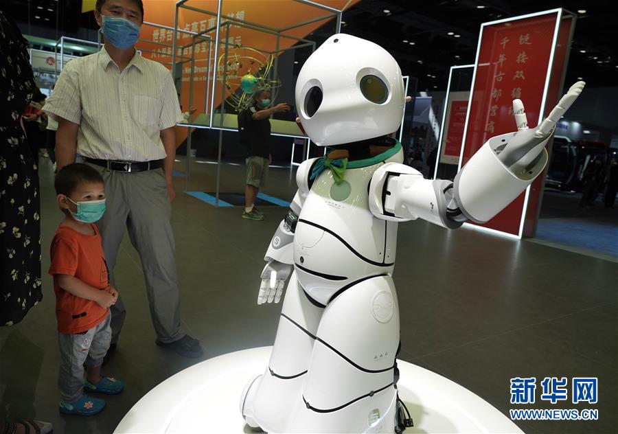 9月5日,在服贸会综合展区,展出的机器人吸引观众目光。 新华社记者 才扬 摄