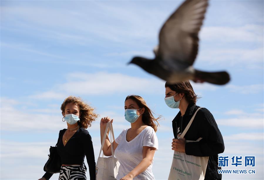 9月3日,人们戴口罩走过法国巴黎特罗卡德罗广场。 法国政府3日宣布,推出总额约1000亿欧元的经济重振计划,以应对新冠疫情蔓延给法国经济带来的挑战。 新华社记者 高静 摄
