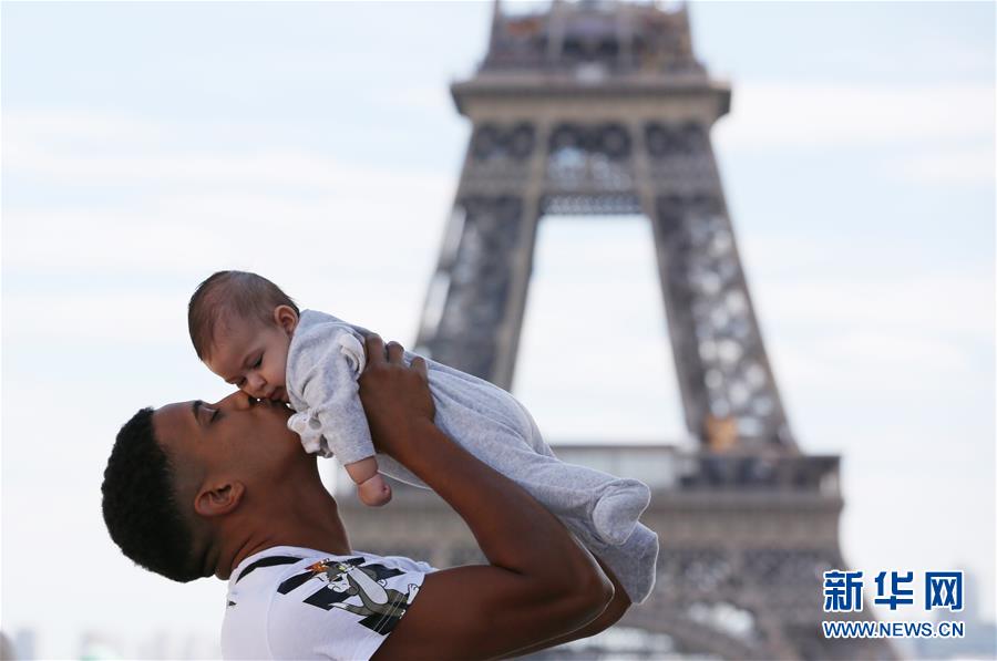 9月3日,在法国巴黎特罗卡德罗广场,一对父子与远处的埃菲尔铁塔合影留念。 法国公共卫生部门3日公布的数据显示,法国过去24小时新增新冠确诊病例7157例,累计确诊300181例,累计死亡30706例。 新华社记者 高静 摄