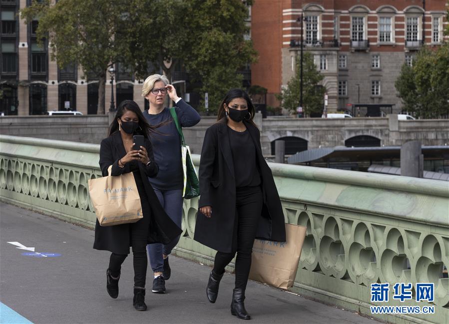 9月8日,人们从英国伦敦的威斯敏斯特桥上走过。 英国卫生部数据显示,英国6日新增确诊病例2988例,创5月以来单日新增确诊病例最高纪录;7日新增确诊病例2948例。卫生大臣马修·汉考克7日说,这一状况“令人担忧”,但政府依然能够控制疫情蔓延。 新华社记者 韩岩 摄