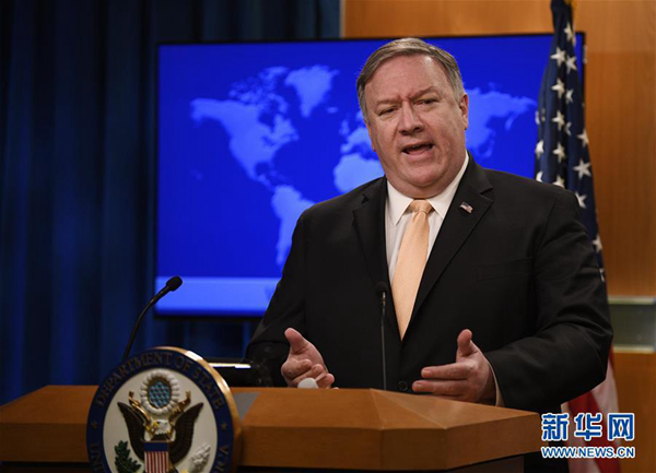 资料图片:美国国务卿蓬佩奥。新华社记者 刘杰 摄