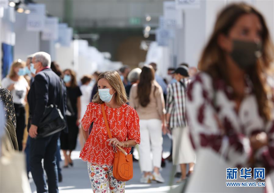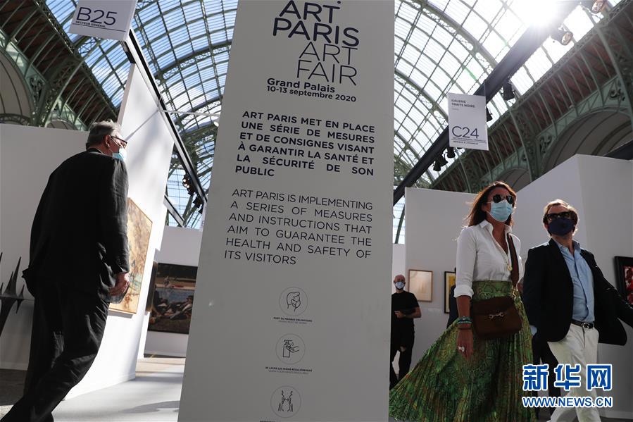 9月9日,人们在法国巴黎大皇宫举行的2020巴黎艺术博览会预展上参观。 2020巴黎艺术博览会于9月10日至13日在法国巴黎大皇宫举行,来自15个国家和地区的112家画廊参加。受新冠疫情影响,原定于4月初举办的巴黎艺术博览会推迟了半年举行。现场配备免洗消毒洗手液,所有人员必须佩戴口罩并保持安全距离。 新华社记者 高静 摄