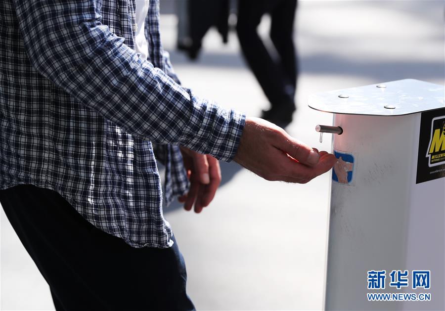 9月9日,在法国巴黎大皇宫举行的2020巴黎艺术博览会预展上,参观者在入口处使用脚踏式免洗消毒洗手液取用装置。 2020巴黎艺术博览会于9月10日至13日在法国巴黎大皇宫举行,来自15个国家和地区的112家画廊参加。受新冠疫情影响,原定于4月初举办的巴黎艺术博览会推迟了半年举行。现场配备免洗消毒洗手液,所有人员必须佩戴口罩并保持安全距离。 新华社记者 高静 摄