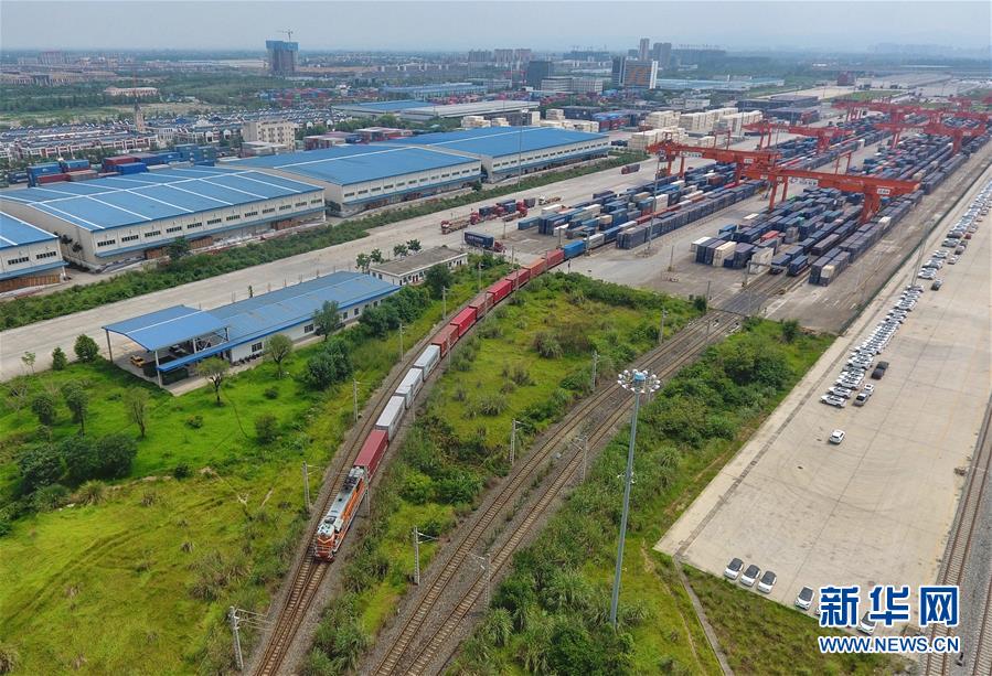 8月5日,一辆满载防疫物资和百货商品的中欧班列从成都国际铁路港发出,开往德国杜伊斯堡(无人机照片)。 今年年初以来,在多个区域因新冠疫情大范围断航的情况下,中欧班列交出亮眼成绩单。最新数据显示,今年8月,中欧班列累计开行1247列、发送货物11万标箱,同比分别增长62%、66%,在疫情防控、复工复产和稳定全球供应链等方面持续发挥作用。中欧班列成为后疫情时代中欧经贸往来日益密切的缩影。 新华社记者 刘坤 摄