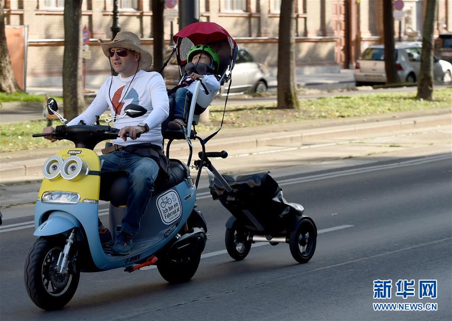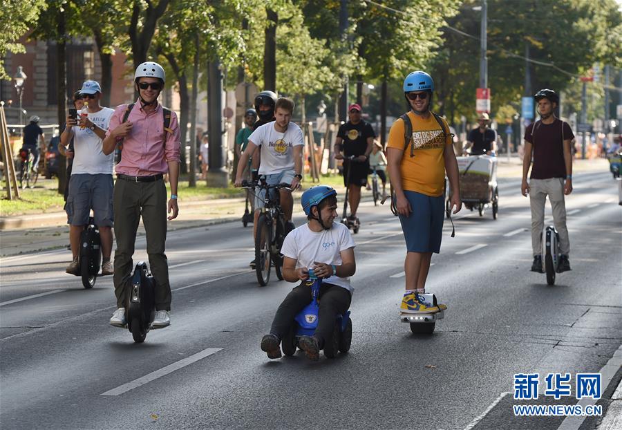 这是9月13日在奥地利维也纳拍摄的电动出行大巡游活动中的电动非机动车。 当日,奥地利首都维也纳在该市著名的内城区环城大道上举行电动出行大巡游活动,共有几百辆电动汽车、电动摩托车以及各类电动交通工具参加。据介绍,本次活动旨在呼吁和促进无排放、高效以及安静的出行方式。 新华社记者 郭晨 摄