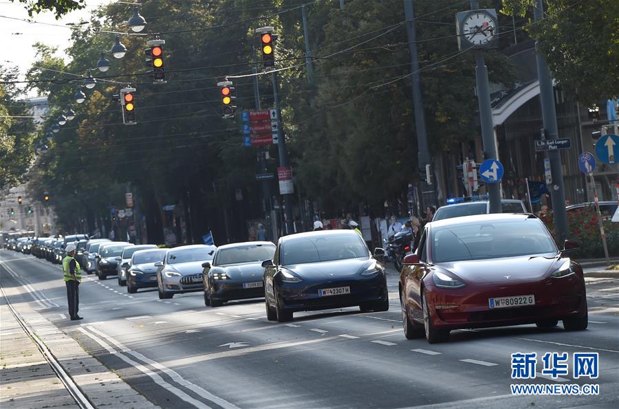 这是9月13日在奥地利维也纳拍摄的电动出行大巡游活动中的电动汽车。 当日,奥地利首都维也纳在该市著名的内城区环城大道上举行电动出行大巡游活动,共有几百辆电动汽车、电动摩托车以及各类电动交通工具参加。据介绍,本次活动旨在呼吁和促进无排放、高效以及安静的出行方式。 新华社记者 郭晨 摄
