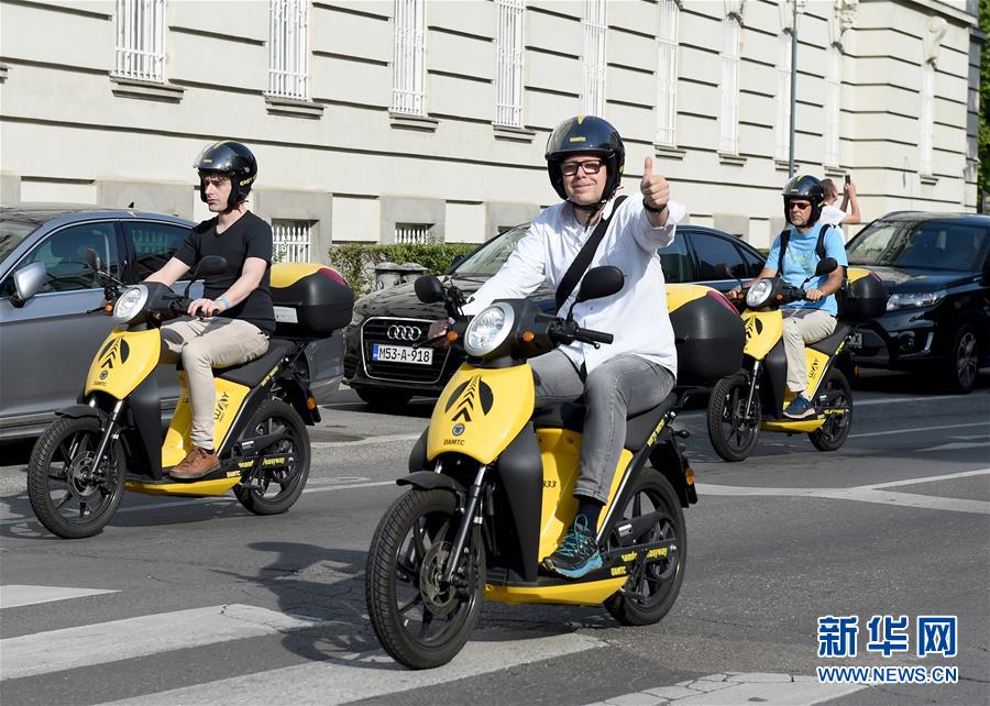 这是9月13日在奥地利维也纳拍摄的电动出行大巡游活动中的电动摩托车。 当日,奥地利首都维也纳在该市著名的内城区环城大道上举行电动出行大巡游活动,共有几百辆电动汽车、电动摩托车以及各类电动交通工具参加。据介绍,本次活动旨在呼吁和促进无排放、高效以及安静的出行方式。 新华社记者 郭晨 摄