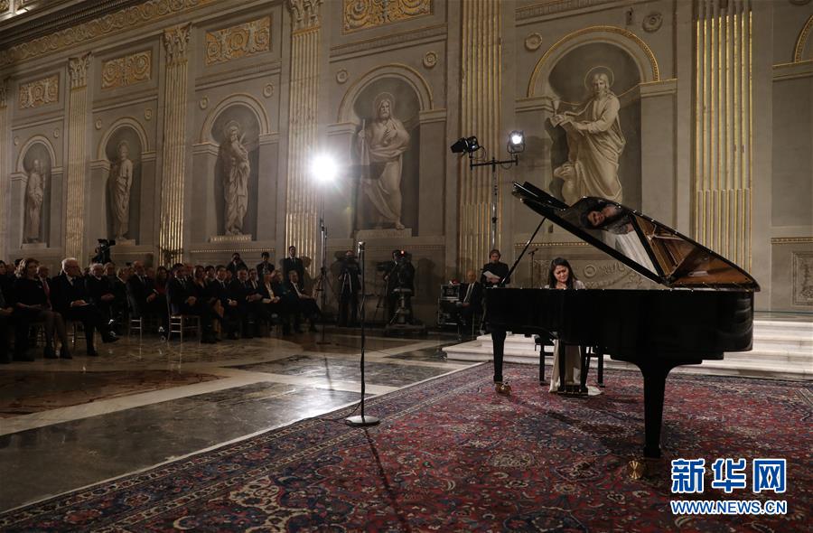 2月13日,在意大利罗马总统府奎里纳莱宫,旅意华人钢琴家居觐在音乐会现场演奏。当日,由意大利总统马塔雷拉提议,在2020年中意文化旅游年计划外加演的一场钢琴独奏音乐会在意大利总统府举行,向抗击新冠肺炎疫情的中国人民传达友谊和支持。