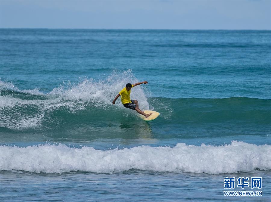 9月13日,在泰国普吉卡利姆海滩,选手参加2020普吉冲浪比赛。 9月13至15日,2020普吉冲浪大赛在泰国普吉卡利姆海滩举行。 新华社记者 张可任 摄