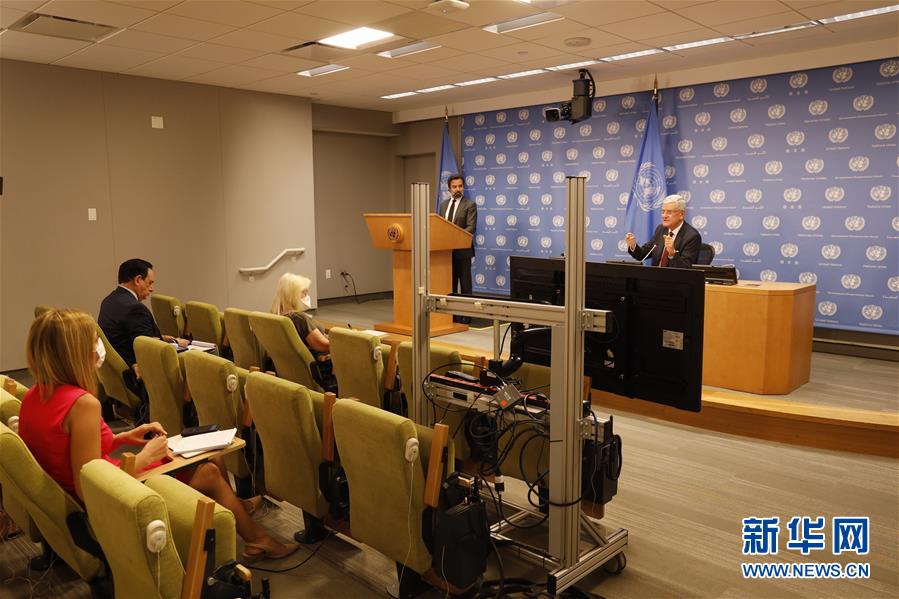 9月15日,在位于纽约的联合国总部,第75届联合国大会主席沃尔坎·博兹克尔(右)在第75届联大开幕后的记者会上讲话。博兹克尔说,第75届联大将举行主题分别为新冠疫情和反腐的两次特别会议,新一届联大紧急优先事项之一就是应对新冠疫情。 第75届联合国大会15日在纽约联合国总部开幕。 新华社记者 谢锷 摄