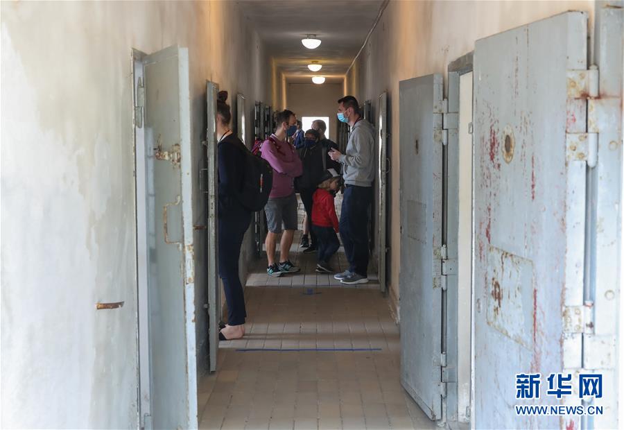 这是8月27日,在德国柏林以北的小城奥拉宁堡,参观者观看萨克森豪森集中营营区内的牢房。 柏林以北的小城奥拉宁堡有一片空地,四周的水泥高墙和铁丝网隔绝了大自然的生机。空地入口铁门上的“劳动带来自由”提醒着人们,这里曾是一座集中营。这里就是萨克森豪森,距离首都柏林最近的集中营。1936年到1945年,共有22万人被关押在此,10万人遇害。75年前,苏联红军解放了萨克森豪森集中营,之后这里成为纪念馆,向世人展示纳粹德国罪行的铁证。 新华社记者 单宇琦 摄