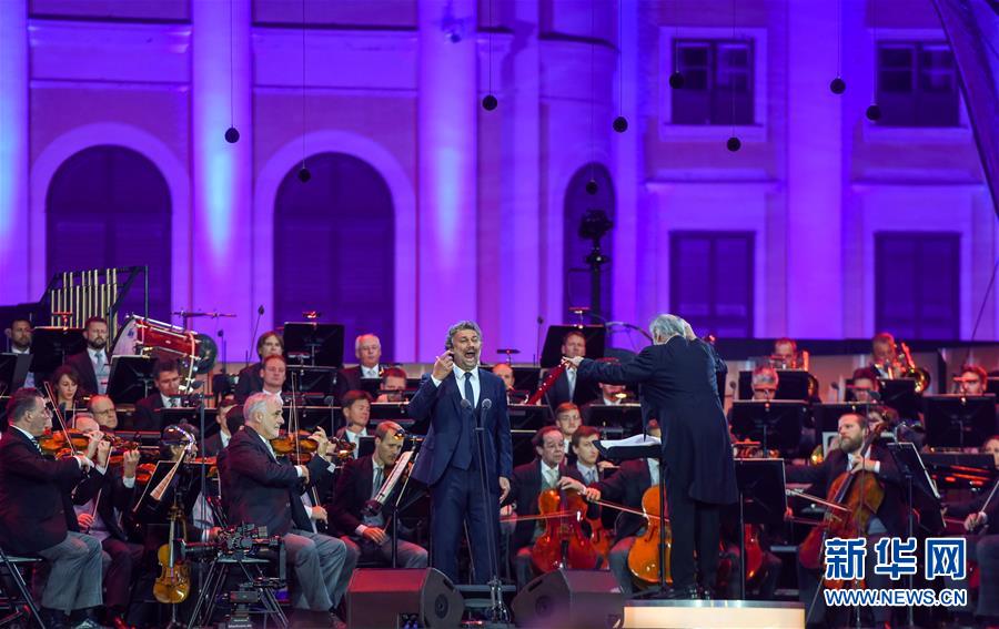 这是9月18日在奥地利维也纳拍摄的2020维也纳美泉宫夏夜音乐会现场。 2020年奥地利维也纳夏夜露天音乐会18日晚在世界文化遗产美泉宫上演。夏夜音乐会是维也纳每年夏季的一大文化盛事,今年由于新冠疫情的防疫措施,音乐会现场观众人数被大规模限制。 新华社记者 郭晨 摄
