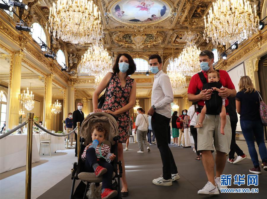 9月19日,人们在法国总统府爱丽舍宫的节日大厅参观。 为期两天的欧洲遗产日于19日拉开帷幕。受新冠肺炎疫情反弹影响,法国部分疫情严重地区宣布取消今年的遗产日活动。如期召开的遗产日活动中也对观众人数进行了严格限制,活动要求参观者提前在网上预约,参观过程中必须佩戴口罩,保持安全距离等。法国总统府爱丽舍宫今年将参观人数限制在每天2500人,为以往参观人数的三分之一。欧洲遗产日活动源于法国。最初这项活动定于每年9月的第三个周日举办,1992年改为周六和周日两天举行。如今,遗产日活动已经扩展到欧洲各国,成为整个欧洲的一项重要文化活动。 新华社记者 高静 摄