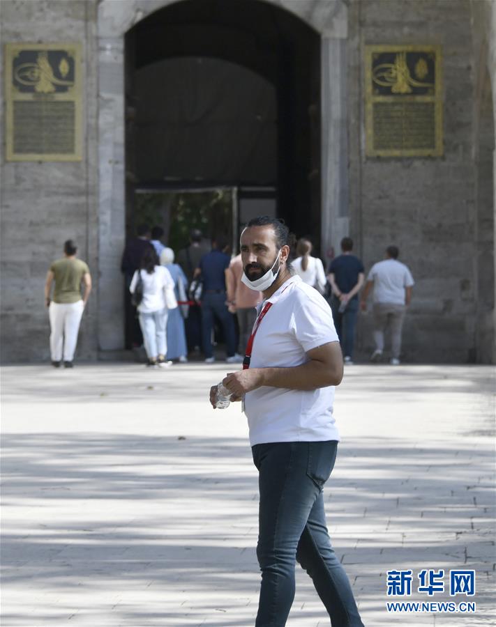 9月19日,游客在土耳其伊斯坦布尔苏丹艾哈迈德广场游览。 受新冠疫情影响,土耳其伊斯坦布尔各大旅游景点游客稀少。土耳其卫生部19日发布数据显示,该国累计新冠确诊病例301348例。 新华社记者 徐速绘 摄