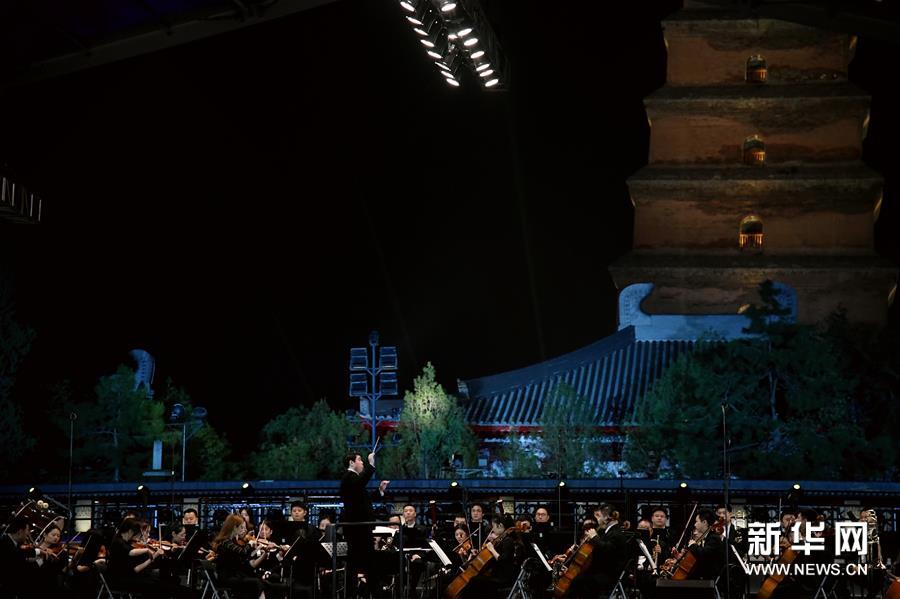 9月19日,西安交响乐团在西安市大雁塔北广场进行户外公演。新华社记者 李一博 摄 新华社西安9月20日电(记者蔡馨逸)19日晚,一年一度的西安交响乐团户外公演在西安市大雁塔北广场上演,让古典音乐走向群众身边。 从赵季平的《汤瓶梦幻》《高原狂舞》、印青的《在灿烂阳光下》到比才的《卡门》选段、拉赫玛尼诺夫的《帕格尼尼主题狂想曲》再到耳熟能详的《我的祖国》《保卫黄河》,东西方音乐在演出中碰撞交融。现场观众时而鼓掌欢呼,时而随音乐摇摆身体,时而高声合唱,尽情享受音乐魅力。 执棒此次户外公演的青年指挥家黄屹说,自2013年西安交响乐团首次举行免费户外公演以来,普及推广古典音乐的步伐从未停止。此次大雁塔户外音乐会也在线上平台播放,当晚累计播放量超过560万。 2020西安交响乐团大雁塔户外公演也是陕西省“我的小康——百花艺术季”的重点演出项目。“我的小康——百花艺术季”由陕西省委宣传部主导策划,汇集了一批展现中国传统文化和陕西特色文化资源的舞台艺术作品,让广大人民群众共享全面建成小康社会的丰硕成果。