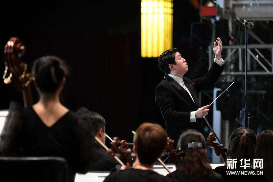 9月19日,指挥家黄屹指挥西安交响乐团进行公演。新华社记者 李一博 摄