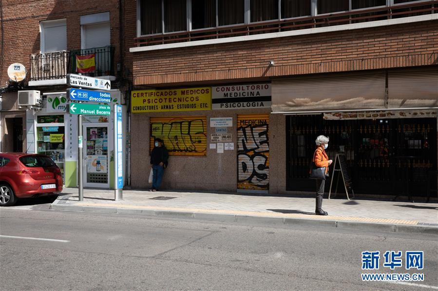 9月21日,在西班牙马德里线型之都区,市民等候公交车出行。 西班牙新冠疫情近来出现严重反弹。其中马德里地区疫情最为严重。从21日零时开始,马德里市的乌塞拉、线型之都、瓦拉卡斯桥等6个城区和马德里周边的赫塔菲等7个市镇的共37个基本卫生区执行至少为期14天的限行政策,以限制人员流动。 新华社记者 孟鼎博 摄