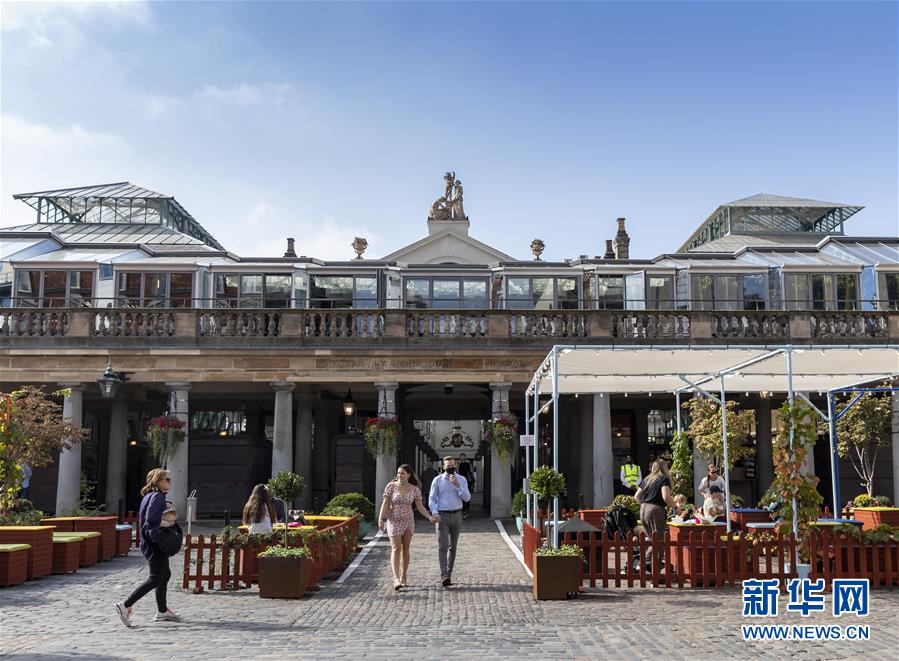 9月21日,人们在英国伦敦市中心的考文特花园行走。 过去数周,英国每日新增确诊病例数激增。英国卫生大臣汉考克9月20日说,英国当前正处于新冠疫情的“临界点”,如果民众不遵守疫情防控规定,政府可能在全国范围内实施二度“封城”。 新华社记者 韩岩摄