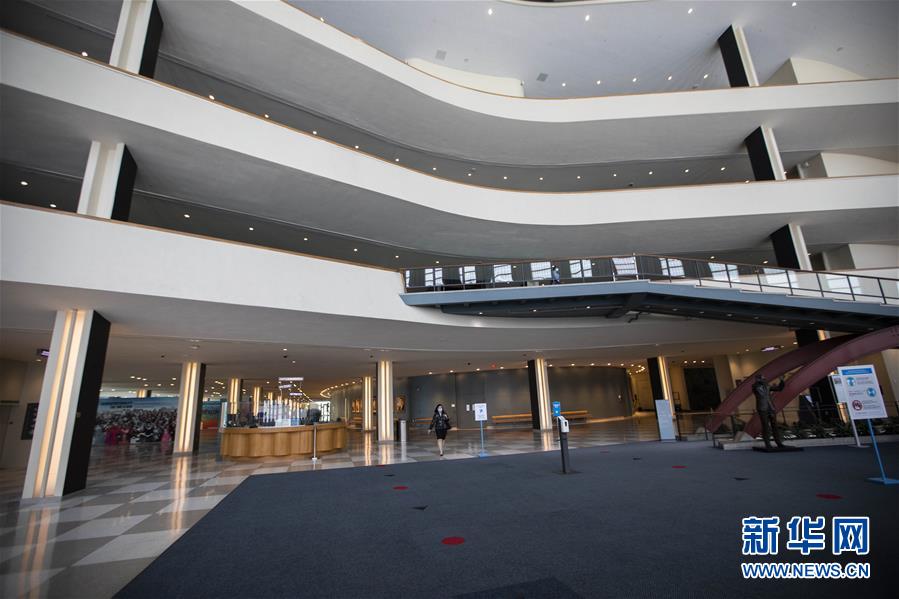 9月22日,在位于纽约的联合国总部,一名女士走在联合国大会楼的大厅内。 第75届联合国大会一般性辩论22日在纽约联合国总部拉开帷幕。受新冠疫情影响,联合国总部内参会者、工作人员、媒体记者等大幅减少。 新华社记者 王迎 摄