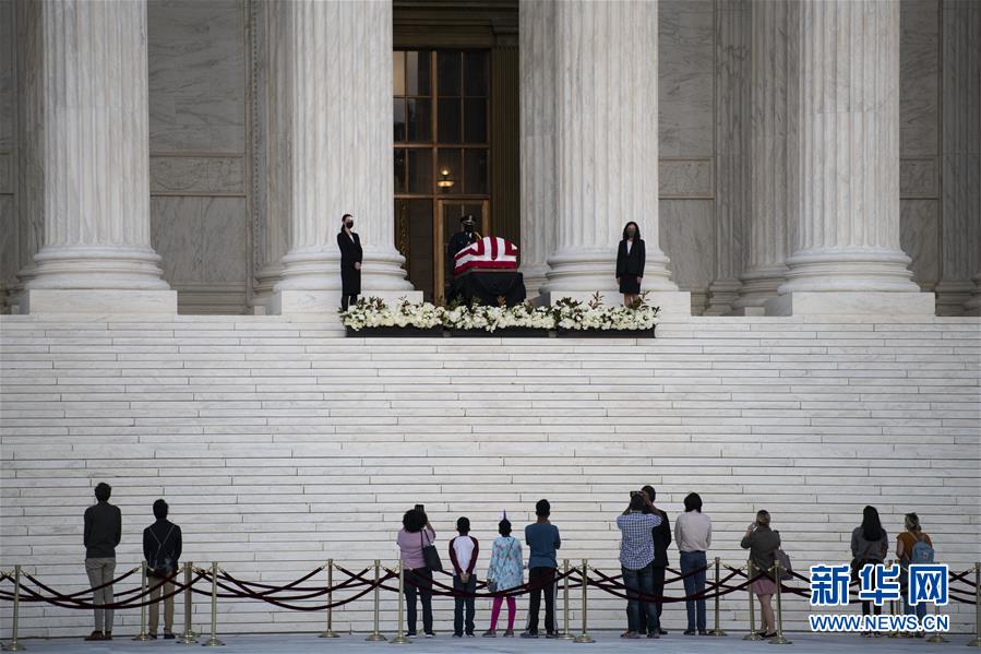 9月23日,美国联邦最高法院大法官露丝·巴德·金斯伯格的灵柩抵达联邦最高法院,安放于台阶最高处的柱廊下,接受公众吊唁。金斯伯格于9月18日去世。