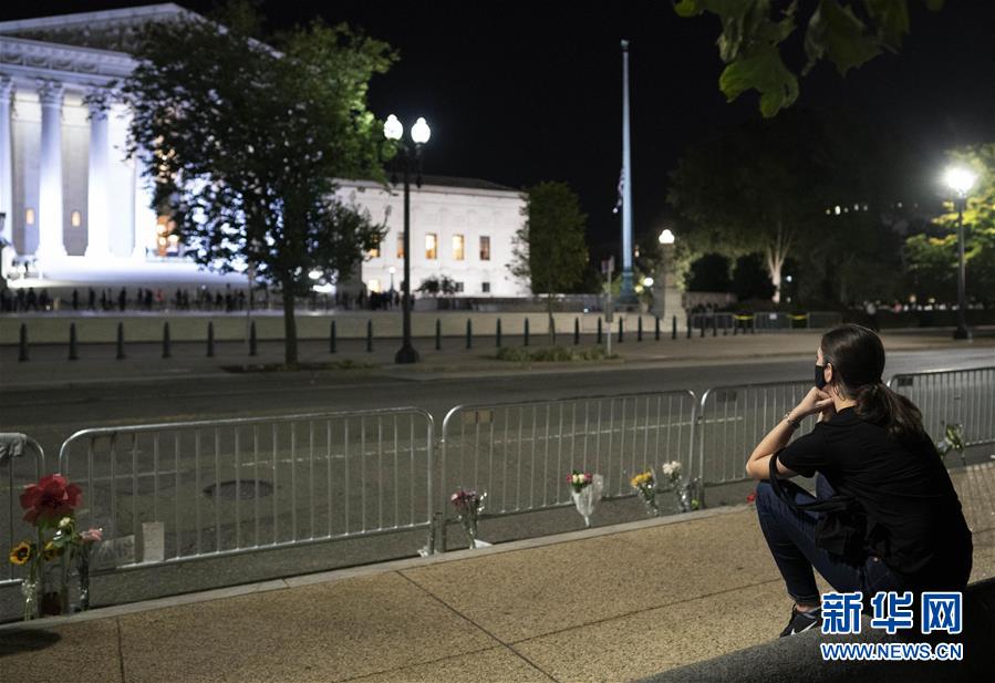 9月23日,人们在位于美国华盛顿的联邦最高法院前悼念大法官金斯伯格。新华社记者 刘杰 摄