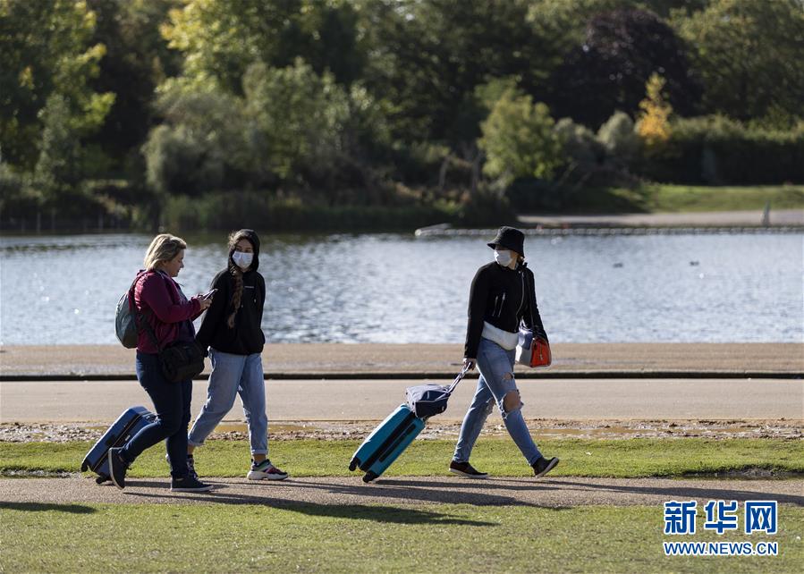 9月24日,人们戴着口罩在英国伦敦市中心一处公园内走过。 据英国政府9月23日发布的数据,该国单日新增新冠确诊病例6178例。 新华社记者 韩岩 摄