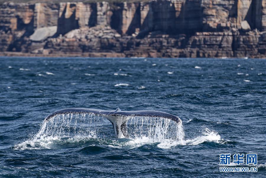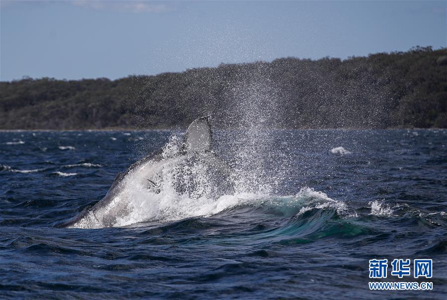 这是9月23日在澳大利亚悉尼以南的杰维斯湾拍摄的鲸鱼。 杰维斯湾位于澳大利亚东海岸,距离悉尼约100公里,每年9、10月间会有大量座头鲸在向北迁徙过程中路过。这里因此发展出了以观鲸为重点的旅游相关产业,新冠疫情爆发之后,大量游客取消相关订单,小镇的观鲸旅游产业受到了影响。 新华社记者 白雪飞 摄