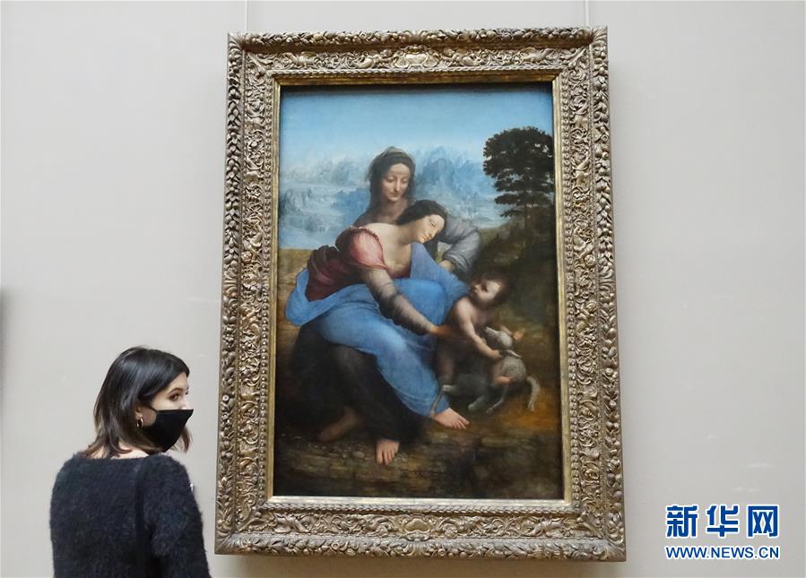 9月25日,一名女子在法国巴黎卢浮宫欣赏达·芬奇名画《圣母子与圣安妮》。