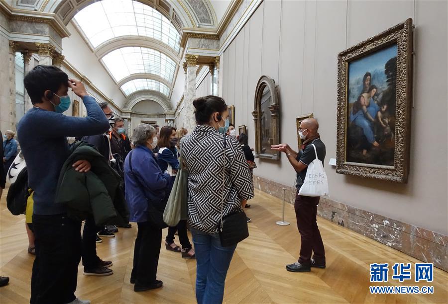 9月25日,一名女子在法国巴黎卢浮宫欣赏达·芬奇名画《圣母子与圣安妮》。 法国政府网站25日公布的数据显示,法国过去24小时新增新冠确诊病例15797例,累计确诊病例超50万例,达513034例。 新华社记者高静摄