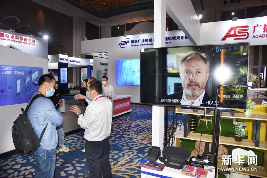 9月26日,参观者在展会上了解5G高新视频技术。新华社记者 李紫恒 摄
