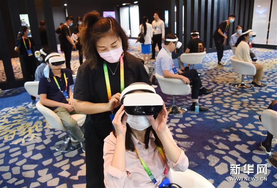 9月26日,参观者在展会上体验融入VR技术的电影。新华社记者 李紫恒 摄