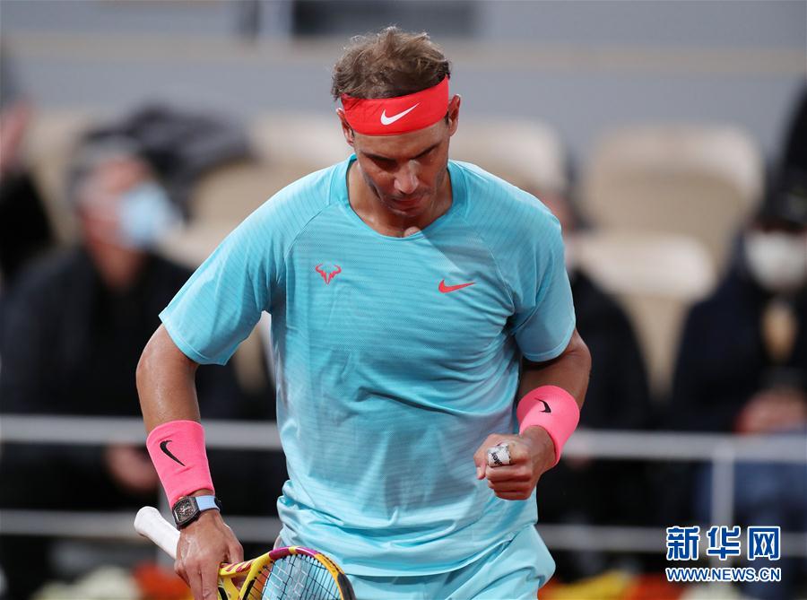 10月11日,纳达尔在比赛中庆祝得分。 当日,在法国巴黎进行的2020年法国网球公开赛男单决赛中,西班牙选手纳达尔以3比0战胜塞尔维亚选手焦科维奇,夺得冠军。 新华社记者 高静 摄 纳达尔横扫焦科维奇 第13次夺得法网男单冠军 新华社巴黎10月11日电(记者 肖亚卓)在11日举行的2020法国网球公开赛男单决赛中,“红土之王”纳达尔以6:0、6:2、7:5横扫头号种子焦科维奇,第13次在罗兰加洛斯加冕男单冠军,这也让他追平了瑞士人费德勒保持的20次大满贯夺冠的男子纪录。 本届赛事,纳达尔展现了惊人的统治力,7场比赛一盘未失。值得一提的是,本场比赛也是纳达尔在法网赛场上取得的第100场胜利,自从2005年首次参加法网以来,纳达尔在红土大满贯上仅输掉过2场比赛。 本场决赛在赛前普遍被看作是一场巅峰之战,两人目前世界排名前两位,一个是“红土之王”,另一个是本赛季到目前为止仅输掉一场比赛的头号种子,但比赛的进程却有些一边倒。 首盘比赛,纳达尔就3次破发直接零封焦科维奇。第二盘,焦科维奇又在第3局和第5局两度被破发,以2:6再丢一盘。 直到第三盘,塞尔维亚人才稍微找回一些手感,在第5局被纳达尔破发后,他在第6局完成回破,这是他全场比赛第一次也是唯一一次破发。双方战至5:5平后,纳达尔在第11局再次破发,并在接下来的发球胜赛局把握住机会,以7:5拿下第三盘。 |