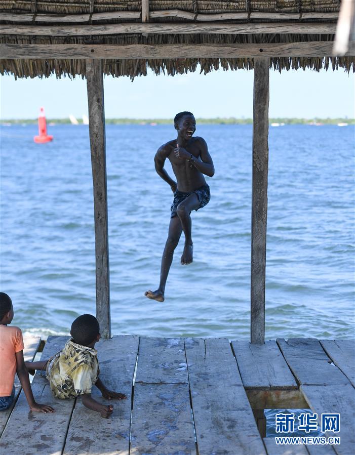2018年11月23日,在肯尼亚拉穆,当地小朋友在海边玩耍。新华社记者 李琰 摄