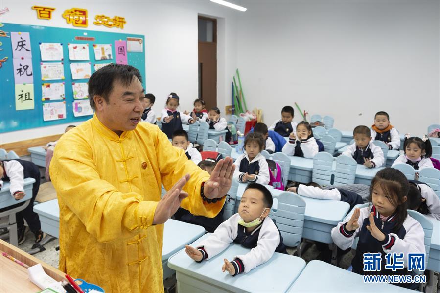 10月13日,在哈尔滨市延兴小学校,黑龙江省传统武学研究会会长孙学孟在给学生们授课。 从10月13日开始,黑龙江省传统武学研究会在哈尔滨市延兴小学校开展试点教学,把黑龙江省省级非物质文化遗产昆仑派无极门武功带进校园。延兴小学校二、三、四年级的学生们可以利用每周二大课间操时间学习非遗武术,在强健体魄的同时了解中国武术内涵,传承中国武术传统文化。 新华社记者 谢剑飞 摄