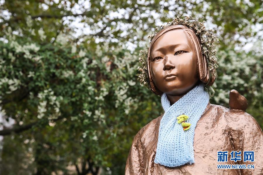 这是10月15日在德国首都柏林拍摄的“慰安妇”铜像。 据德国媒体日前报道,在韩国民间组织和当地民众举行抗议后,德国首都柏林一家法院裁定,暂不拆除市中心的一座“慰安妇”铜像。据报道,日本外务省及日本驻德使馆一直向德外交部及柏林市政府施压,要求拆除这座铜像。为避免“陷入外交纠纷”,柏林市原定于本月14日将其拆除,但因连日来不少韩国民间团体和当地市民在铜像附近示威抗议,柏林市法院随后裁定暂不拆除。 新华社记者 单宇琦 摄